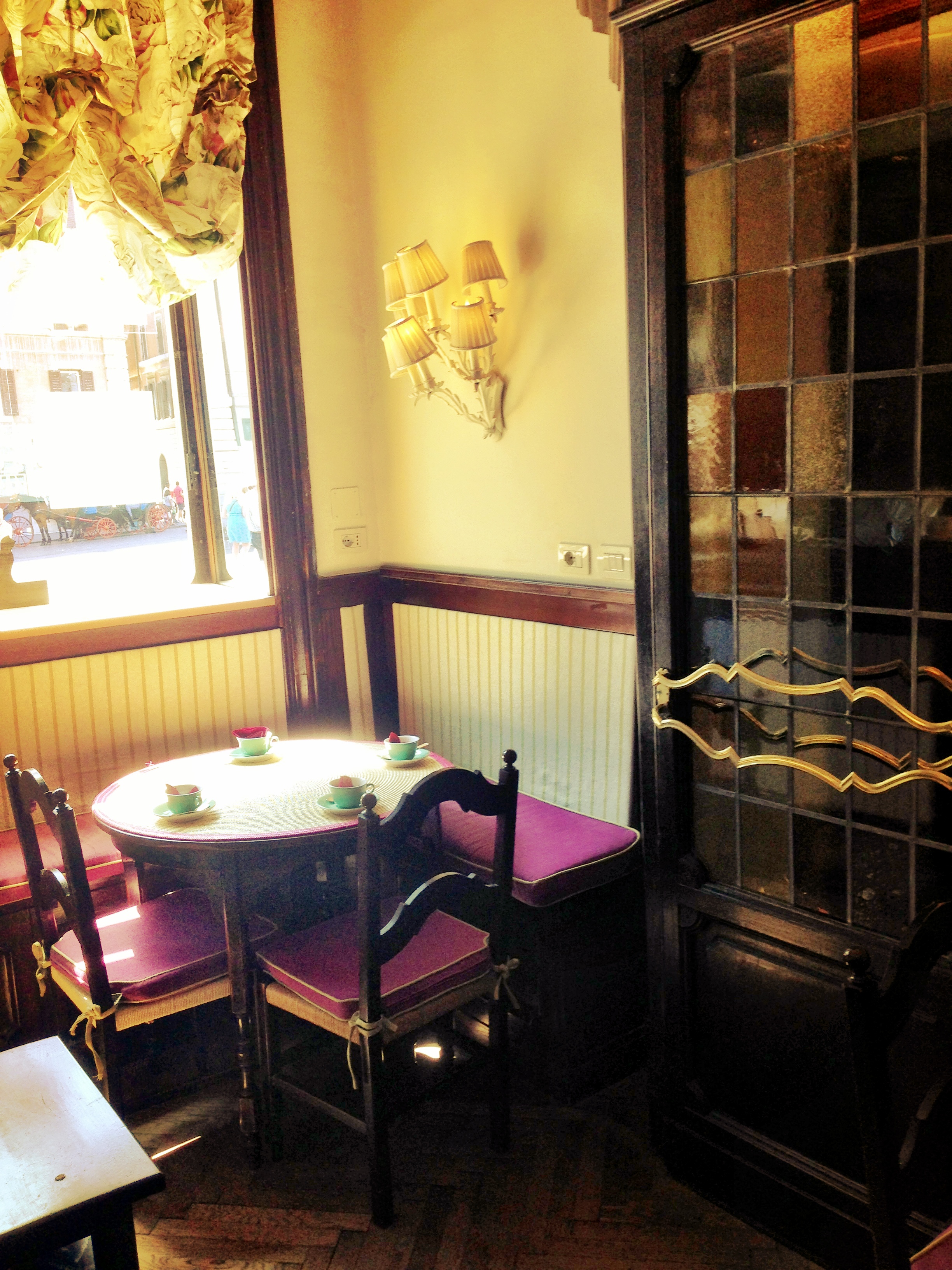 Cool off, relax, enjoy the food and the mini-cheese-cake cups. And of course, be a part of 120 years of history and have a glass of the refreshing mint iced tea before you wander back out for a late afternoon stroll through Piazza di Spagna.
