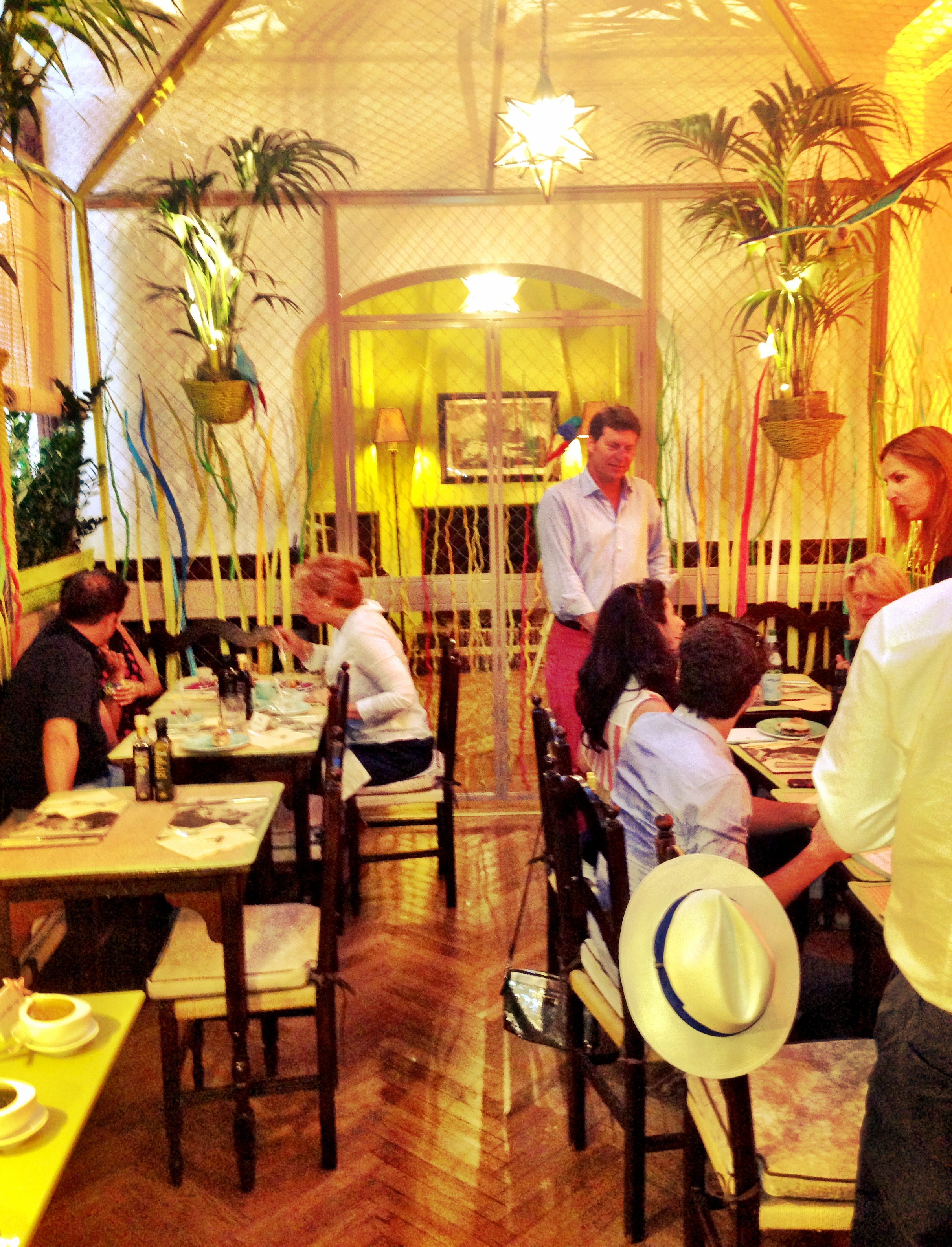 The normal interior of white walls and Tudor-style wood timbers reminiscent of many a British tea room has been transformed into a tropical atrium-like salon for the summer. Decorated with palm leaves and rattan window shades, entering Babington’s back lunch room transports you away from the crowds, the traffic, and the heat into a cool, exotic garden. Oh yes, and you’ll be serenaded by the recorded tweets and chirps of little birds coming from the painted ceiling.